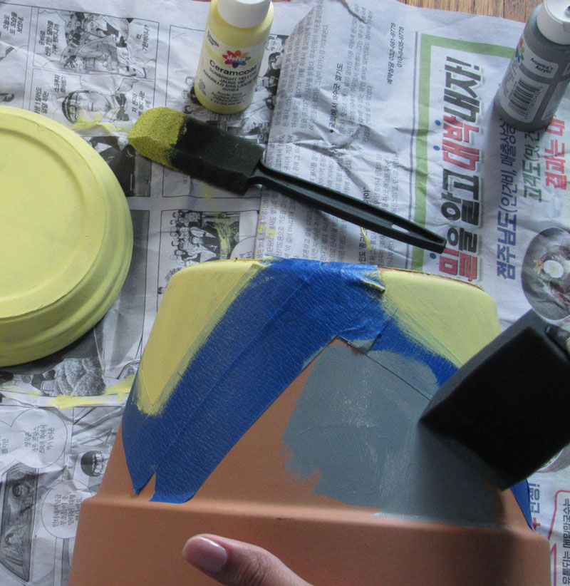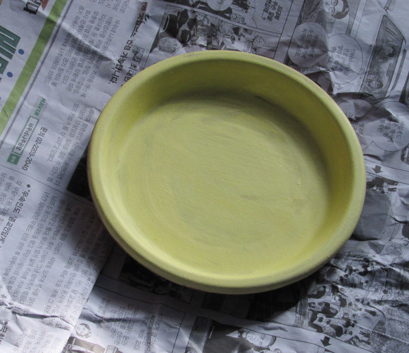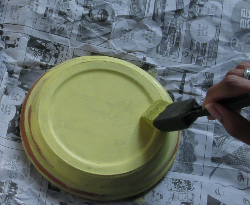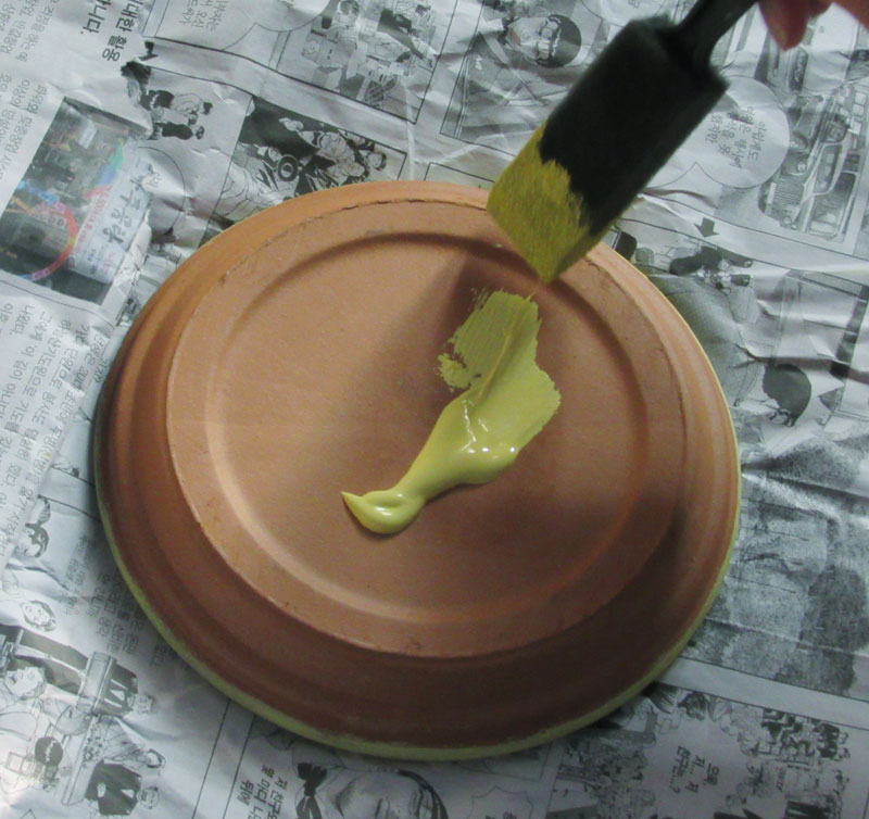 Start painting. This part is just as easy as painting the terracotta saucer. It will dry very fast so you can keep rotating and painting. No messy fingers required.