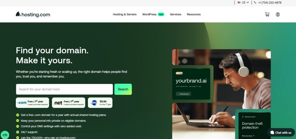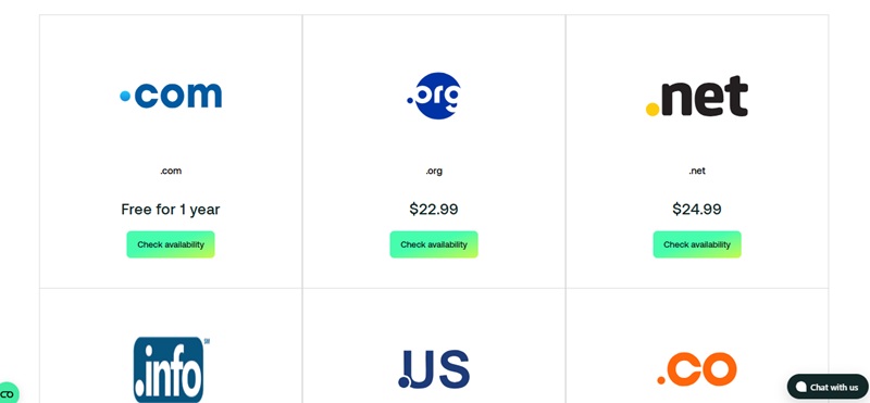 Search for your domain to make sure it’s not already owned by someone else. Get a free “.com” domain for a year with annual shared hosting plans.