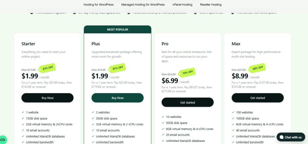 Purchase at least a 12-month hosting plan. Paying month-to-month may sound enticing. However, it is less effective. When you sign up for a minimum of 12 months, you will receive lower pricing, and you won’t have to deal with an expired website after each month.