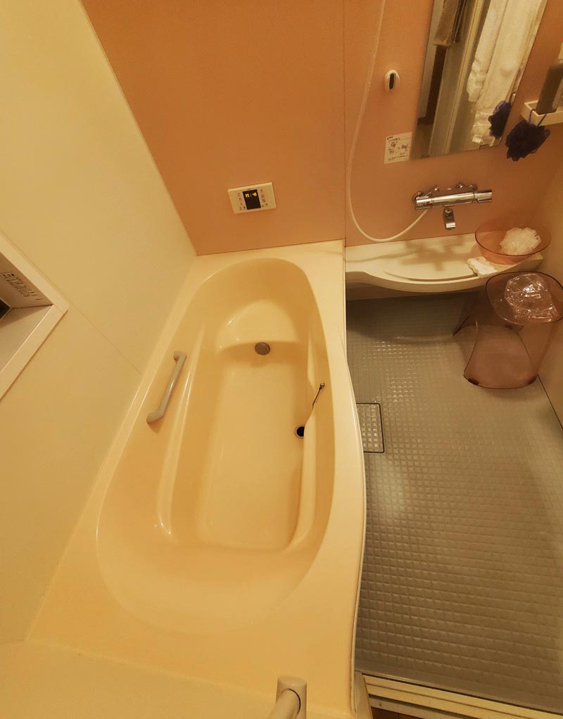 Japanese bathrooms don’t contain the sink, tub and toilet together in one room like Western bathrooms. The toilet is usually separate. And of course, I neglected to get photos! However, you can see the sink and tub in the downstairs bathroom (above and below).